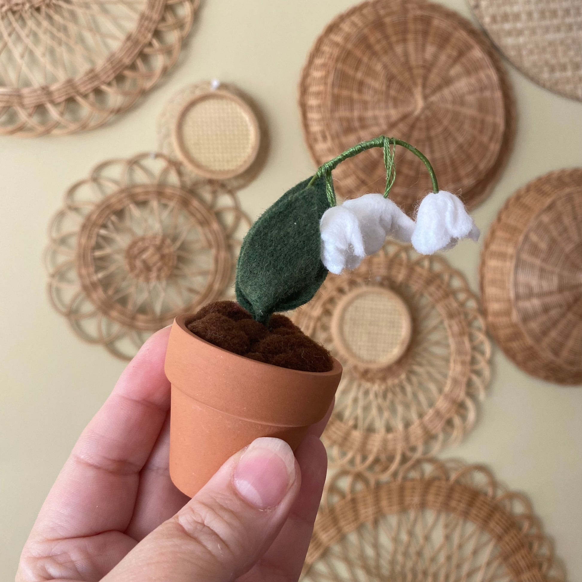 The flower stands approximately 4-4.5” tall, making it the perfect size for desks, shelves, or gift baskets.