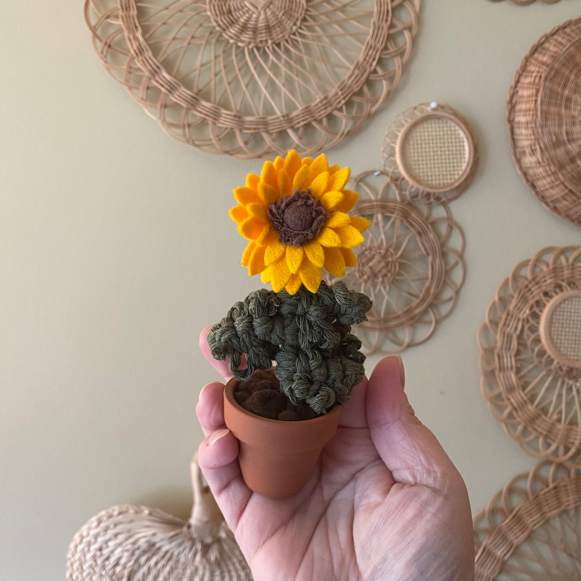 Macrame and felt sunflower ***older style*** Mini size 1.8” pot