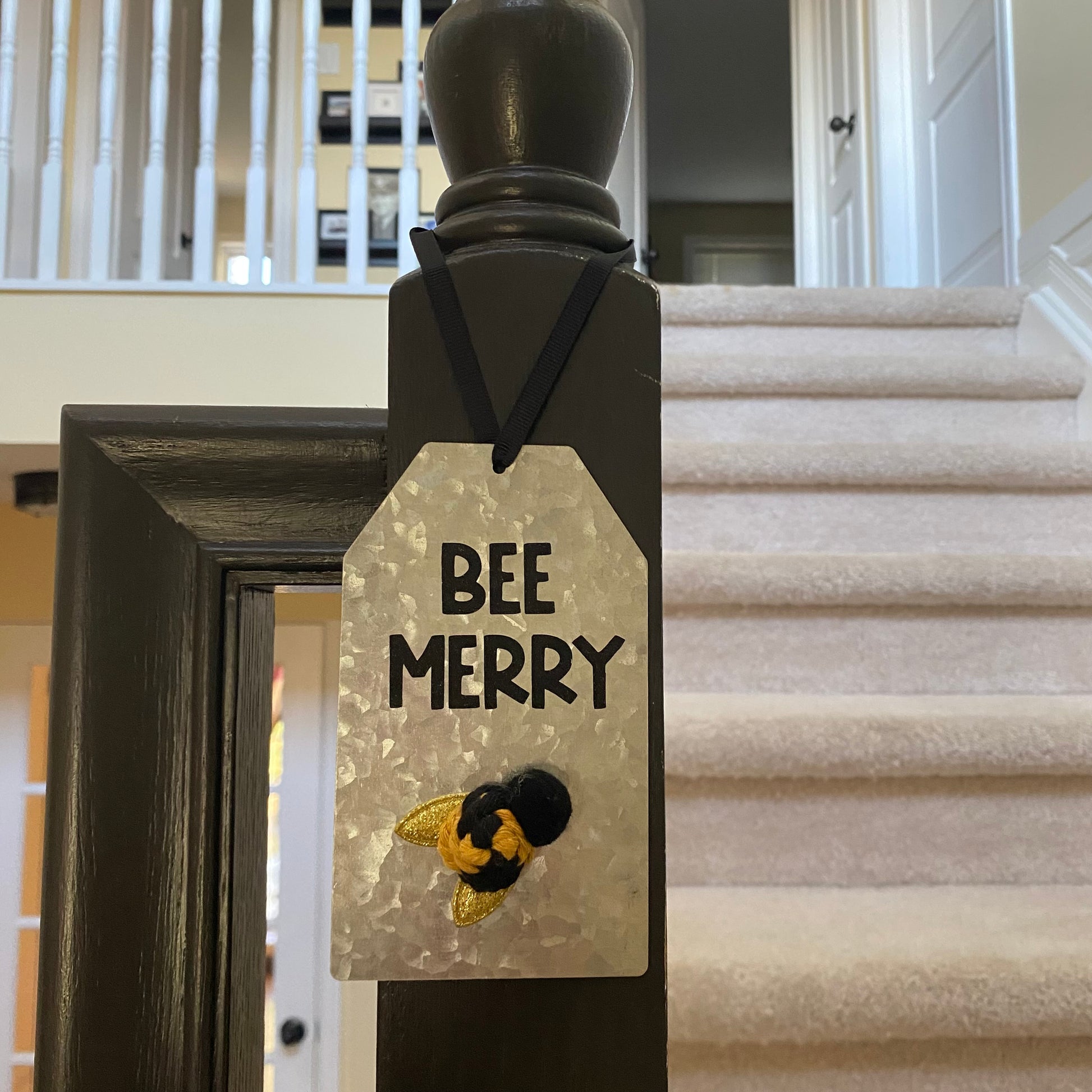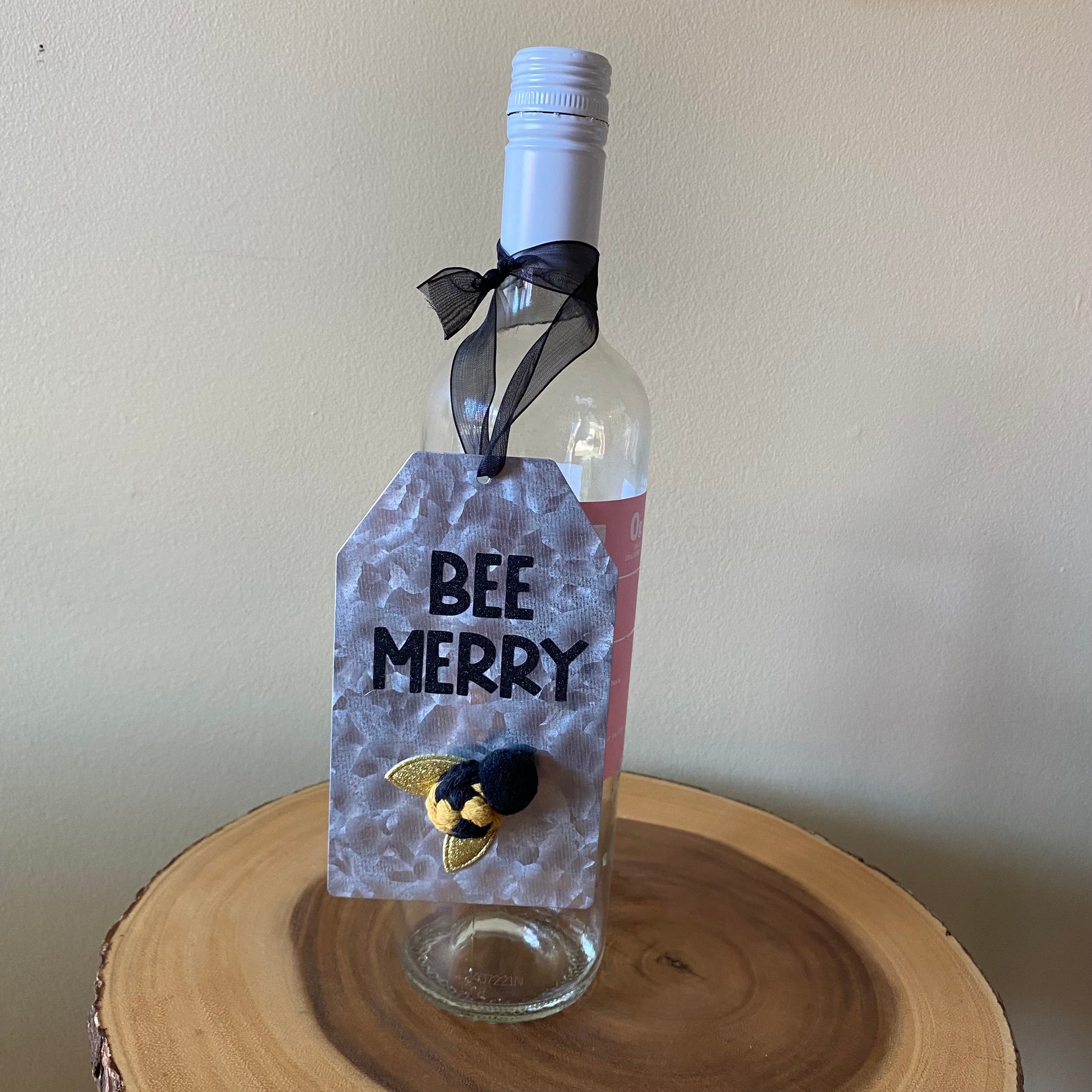 This festive bee motif tag would be a unique gift for a bee lover and can be used as a gift tag, wine bottle charm, door knob or newel post decoration or Christmas tree ornament.