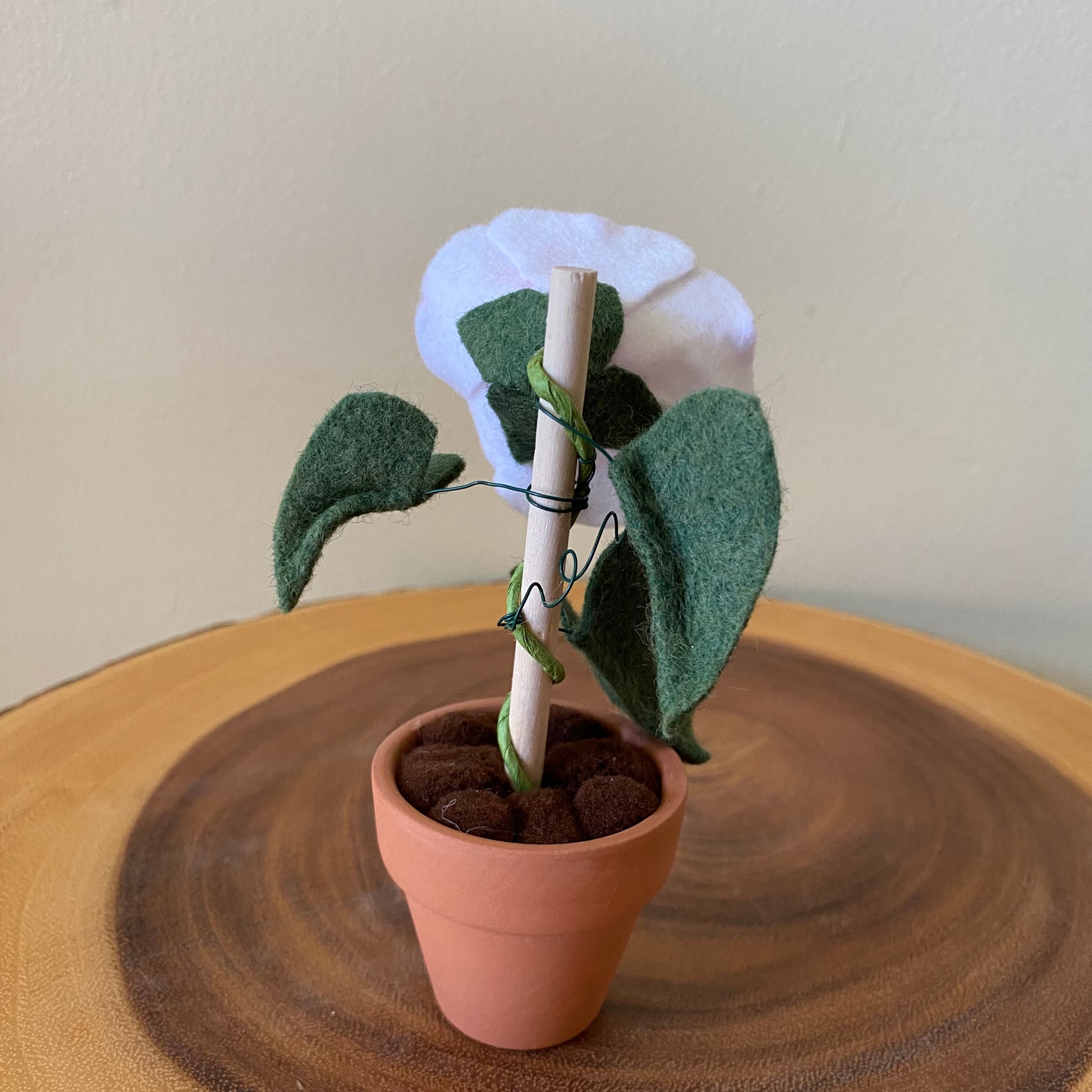 Each felt flower is in a 1.8”- 2” clay pot.