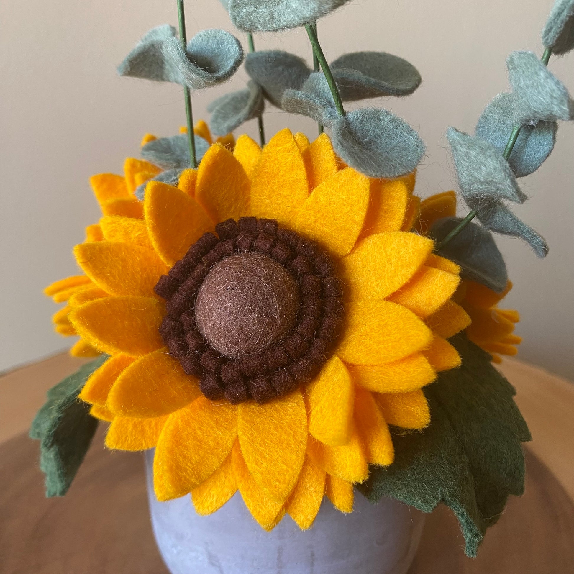 - Felt sunflowers and Eucalyptus